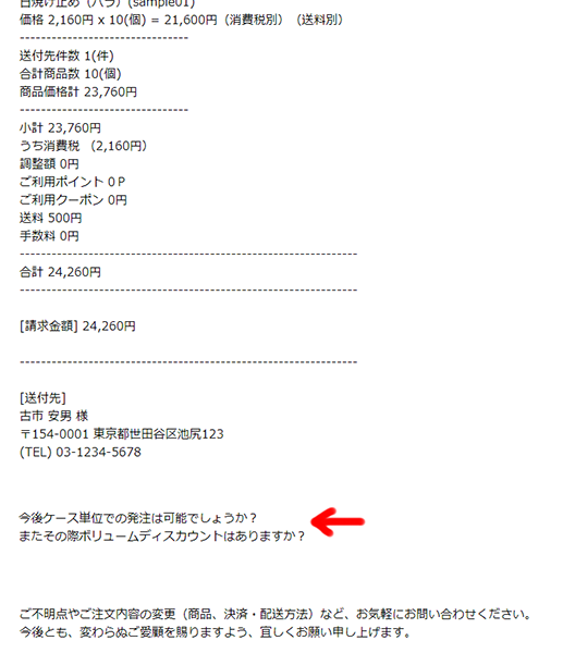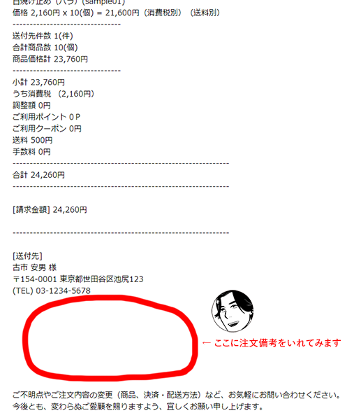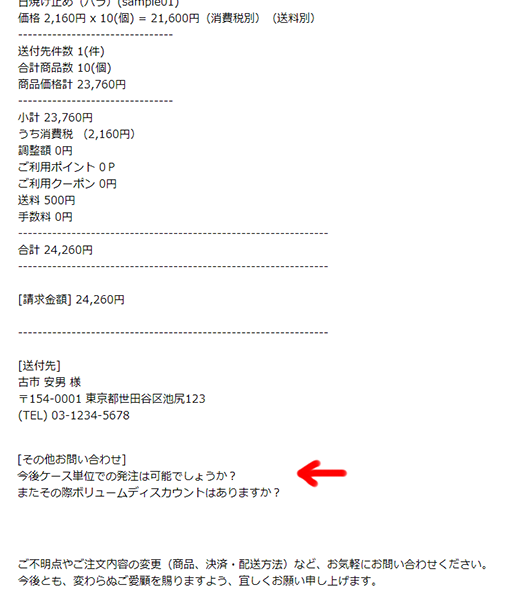 ご注文確認メール内に表示させてみました。いかがでしたでしょうか?