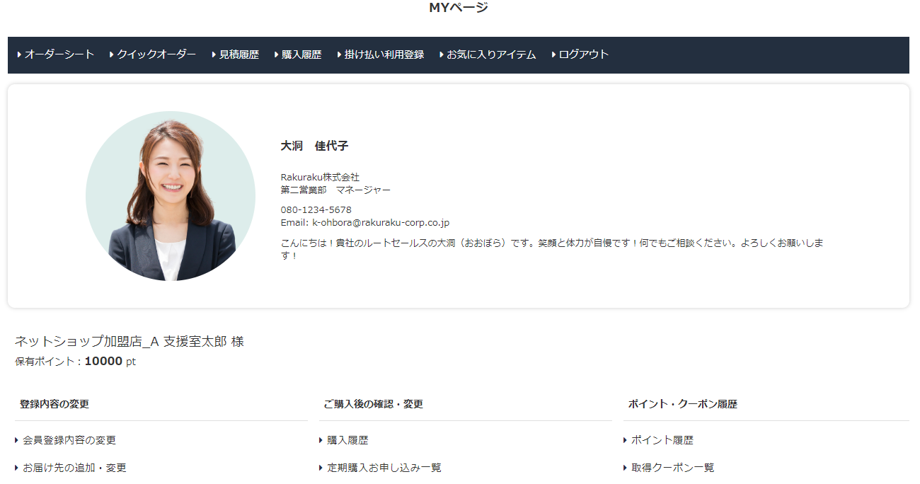 MYページに営業担当を表示することで、オフラインと同様営業担当を身近に感じてもらえ、営業担当者自身も自分のお客様の状況を把握することが可能です。
