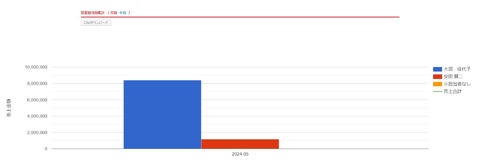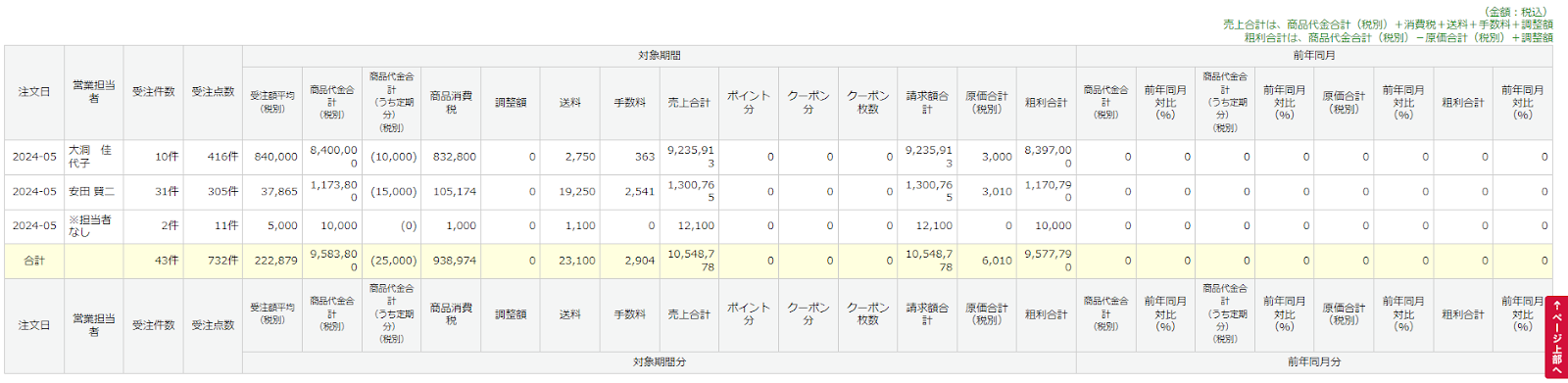 営業担当者別に集計結果が表示されます。