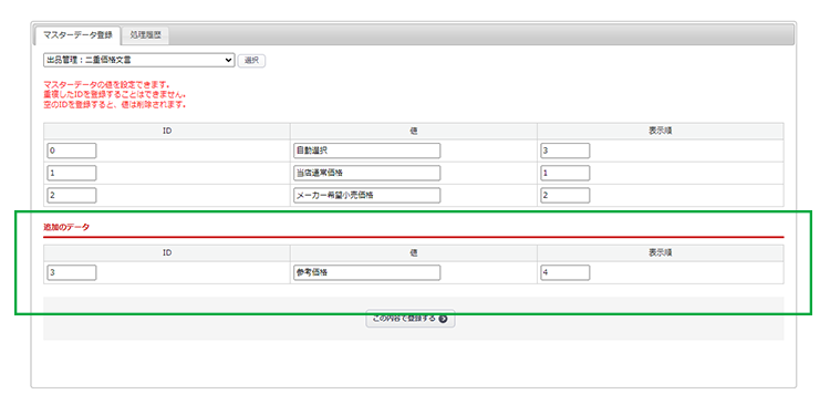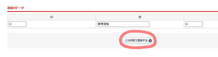 今回設定したい「参考価格」を、追加のデータに入力して・・・
