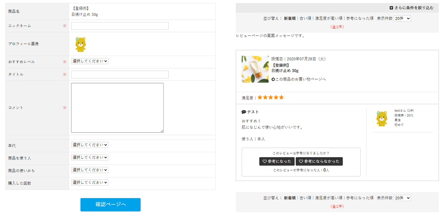 そのため、リピート通販ではレビューを自然発生に任せるのではなく、積極的に収集できる仕組みを作ることが重要です。例えば、購入や配送後のレビュー依頼メールの自動配信や、投稿フォームの設置などが挙げられます。以下は、スマレジEC・リピートのレビュー投稿フォームです。