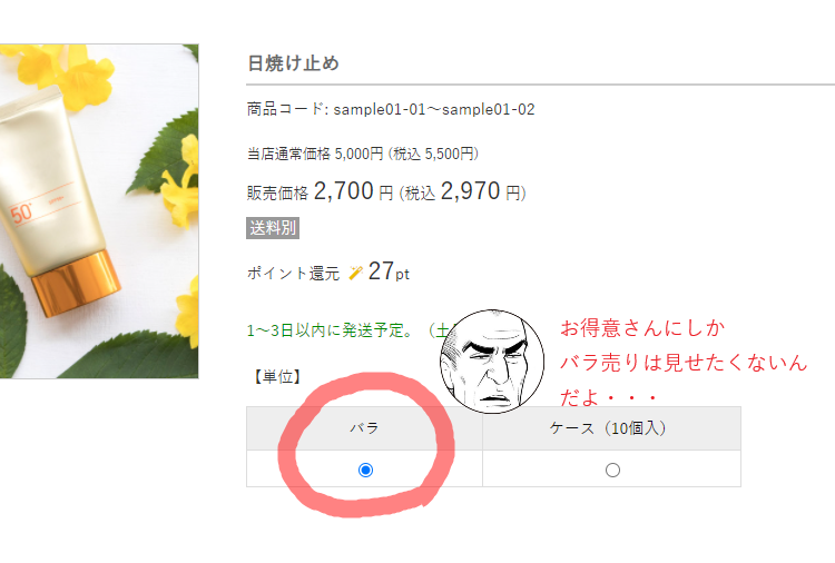 商品を「バラ」と「ケース」の2商品に分けて登録し直しです!