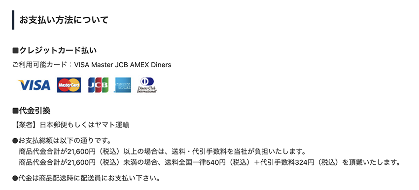 「ご利用ガイド」のお支払い方法と、サイトの一番下に説明を載せないとイカンのだがね