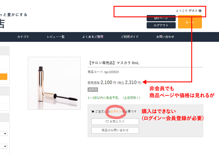 - 価格も、「会員価格は会員様にのみ公開」ではなく通常販売価格を見せたい