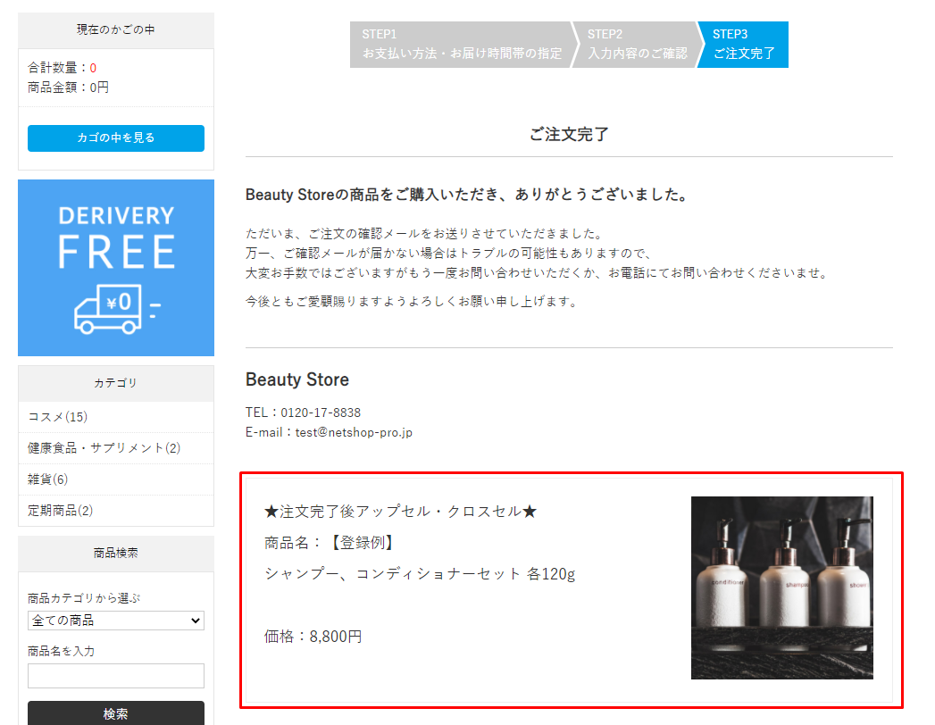 ◆注文完了後のアップセル・クロスセルの例