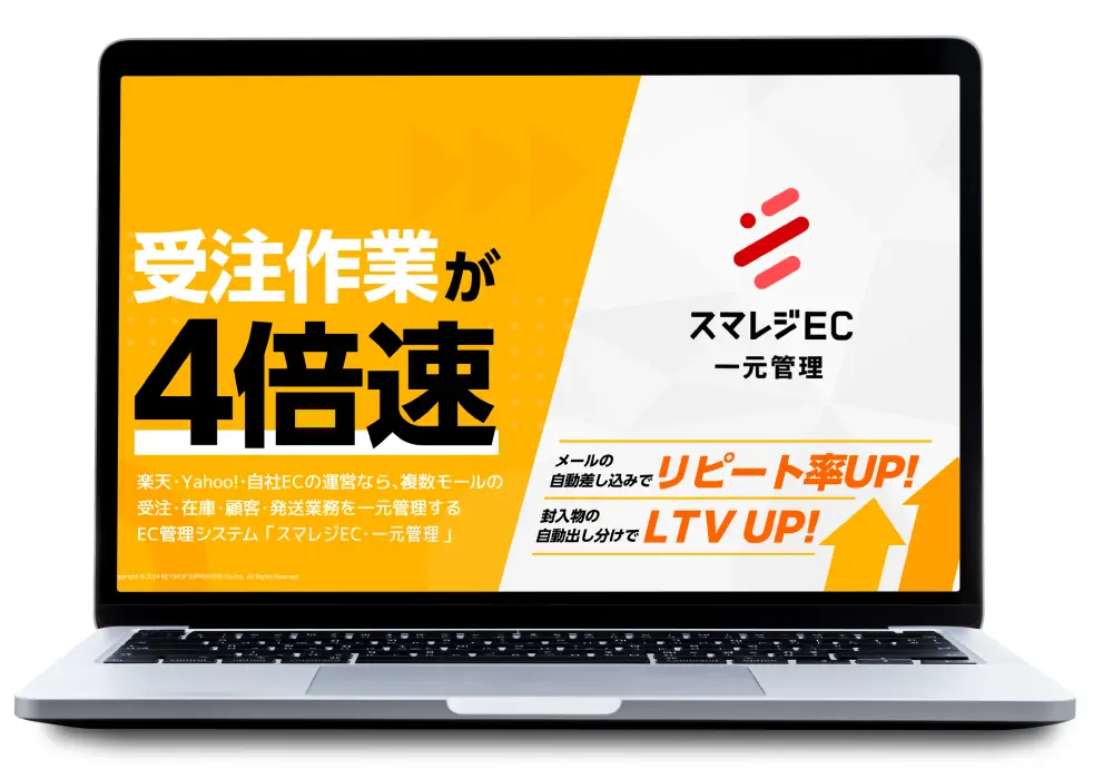 スマレジEC・一元管理は、複数のネットショップ・ECモール・自社EC・店舗に分散した受注管理・在庫管理・顧客管理を一元化できる一元管理システムです。