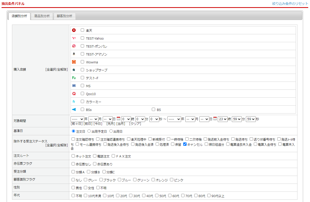 | 購入店舗 | 集計対象とする購入店舗を設定 ※選択のない場合は全項目が集計対象となります。 |