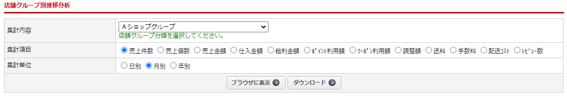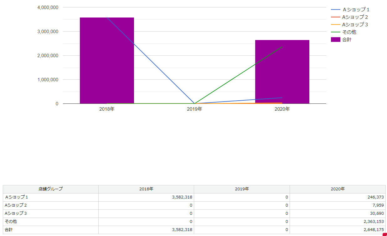 集計条件で設定した期間の店舗グループ別の売上データを集計、分析できる機能です。