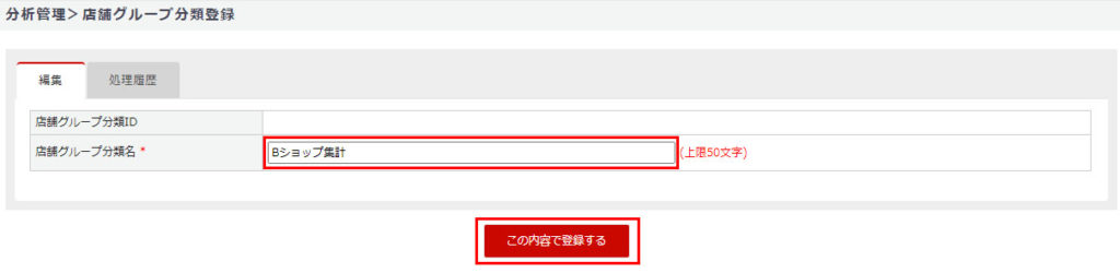 集計や、分析の際に使用する「店舗グループ分類」を登録します。