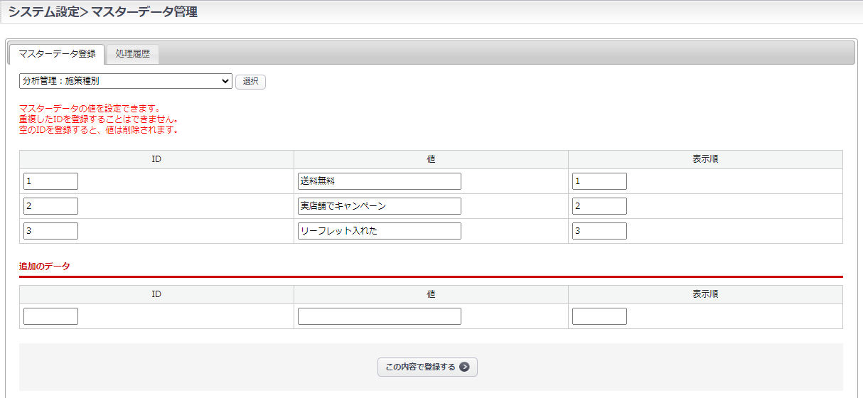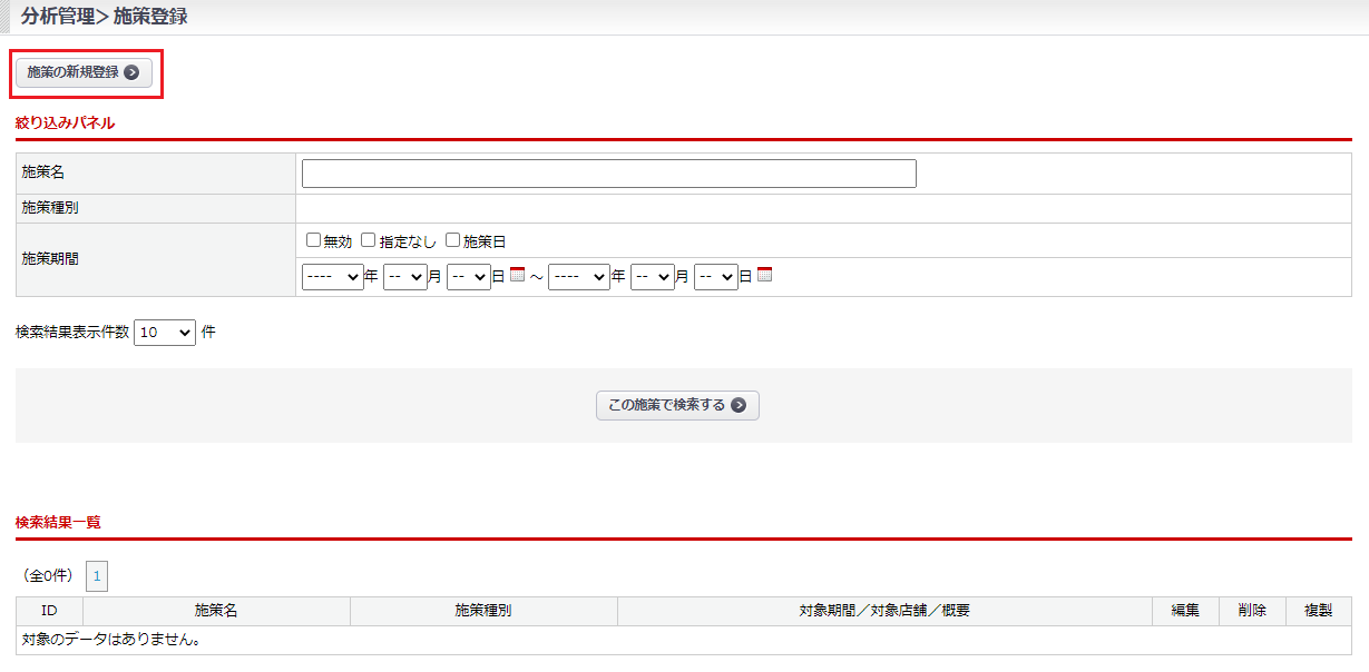 分析管理>施策登録