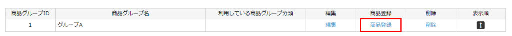 登録したグループ名が表示されるので、「商品登録」をクリック