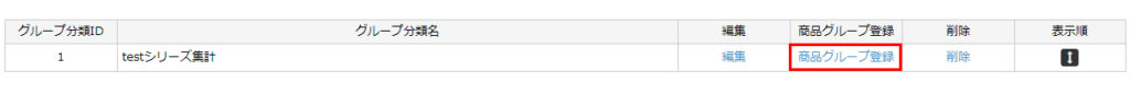 登録したグループ分類の「商品グループ登録」をクリック