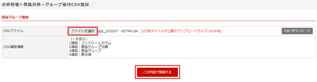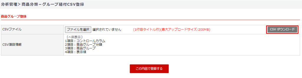 商品分類-グループ紐付CSV登録
