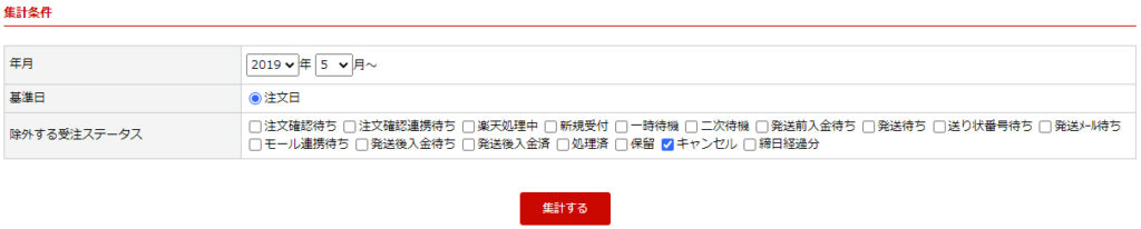 | 除外する受注ステータス | 集計に含まないステータスを指定します。※任意 |