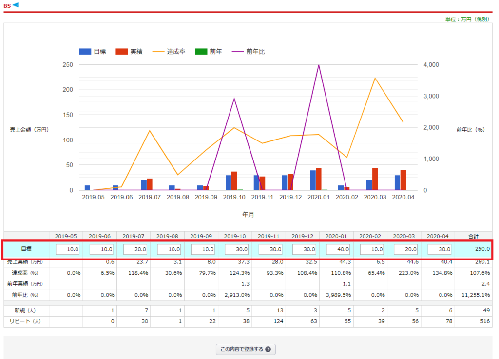 目標金額を入力すると、目標金額に対する達成率が表示されます。