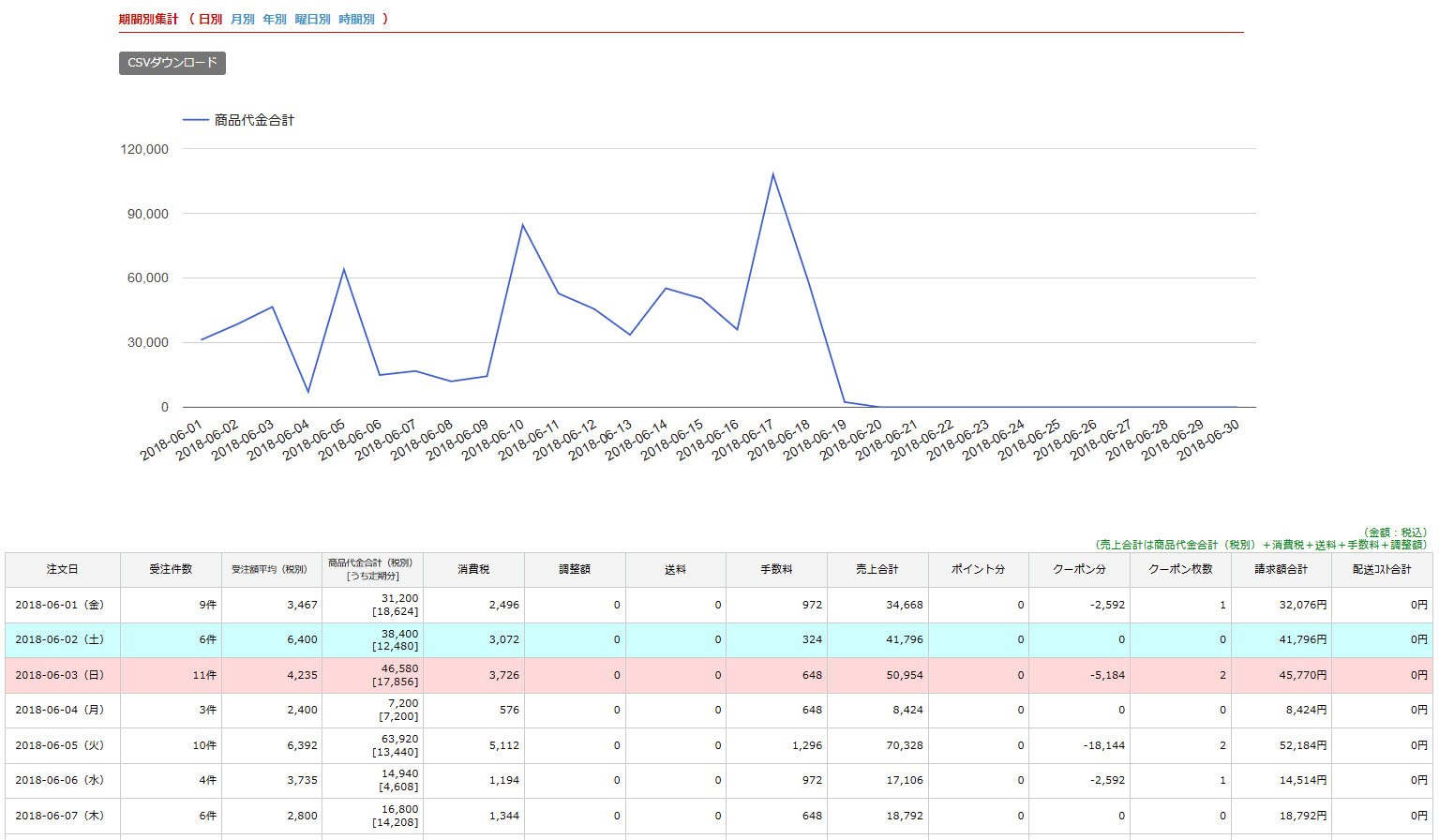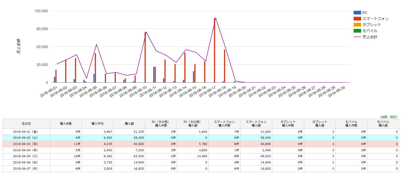 (日別/月別/年別/曜日別/時間別)で表示切替可能。