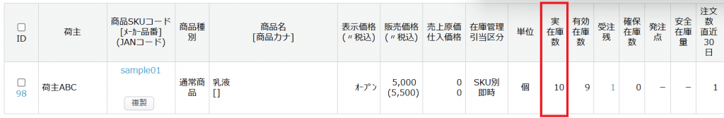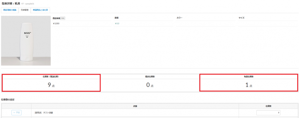 ・在庫数(理論在庫)=在庫数の設定で登録した数