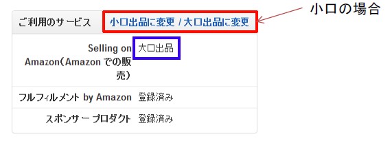 変更する場合、【小口出品に変更 / 大口出品に変更】をクリックします。