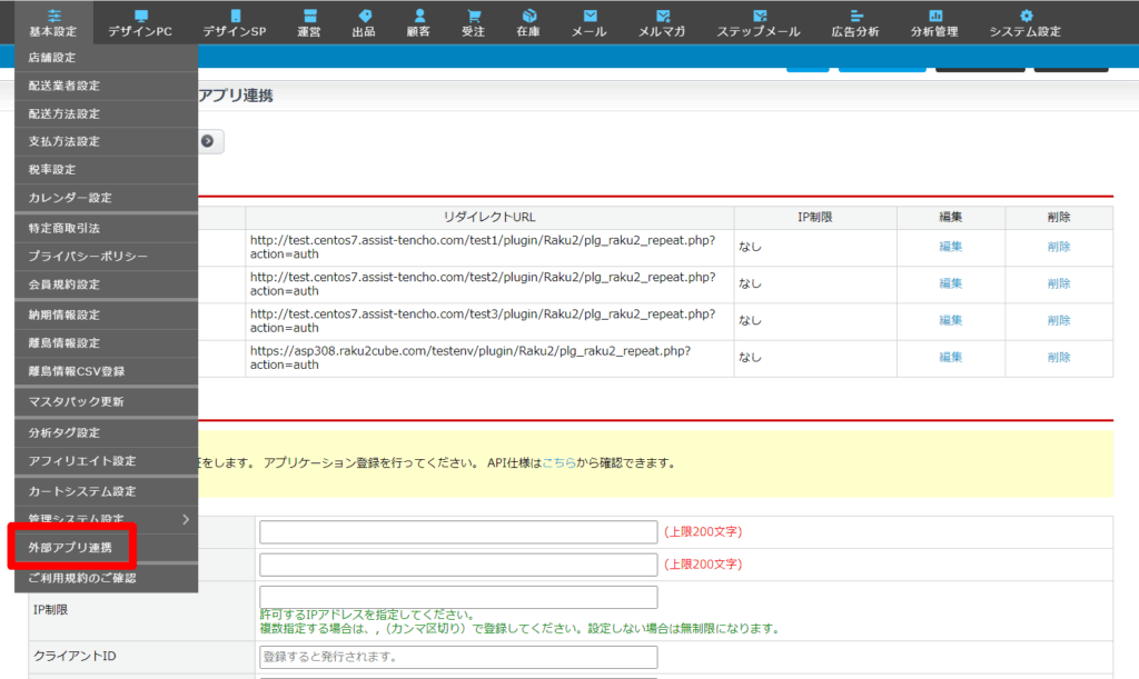 ※スマレジEC・リピートで常時SSLの設定をしている場合は、「https://~」で始まるURLとなります。 - アプリケーションID:スマレジEC・リピートのクライアントID