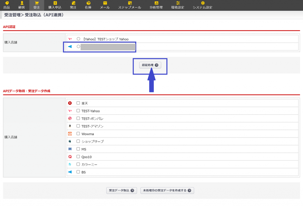 月に1回程度、認証処理が必要です。認証期限が切れると受注データが取り込まれなくなるため、