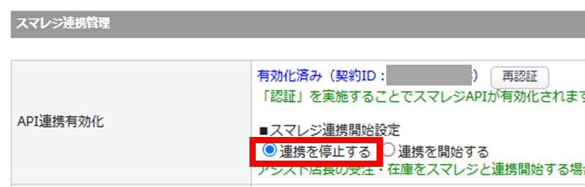 「■スマレジ連携開始設定」を[連携を停止する]に変更します。