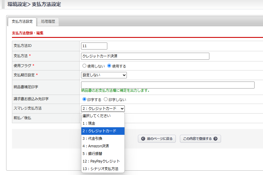 紐づける支払方法を選択し、[この内容で登録する]をクリックします。