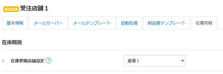 - 受注店舗の[在庫同期]タブを開き、「2」で登録した倉庫を紐づける