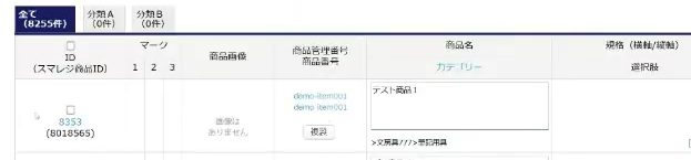 スマレジEC・一元管理の出品商品一覧に、スマレジの商品情報が取り込まれていることを確認します。