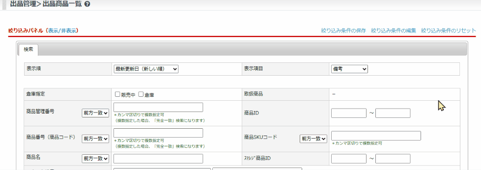 [連携する]を選択すると、[出品管理>出品商品一覧]に連携処理を行うためのバネルが表示されます。