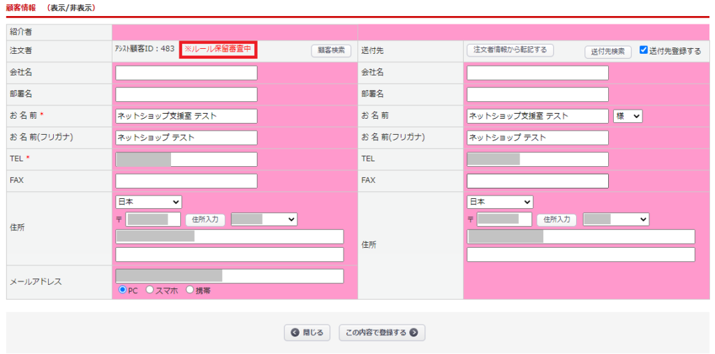・不正利用の疑いのある注文の取込みをした場合(ルール保留審査中)