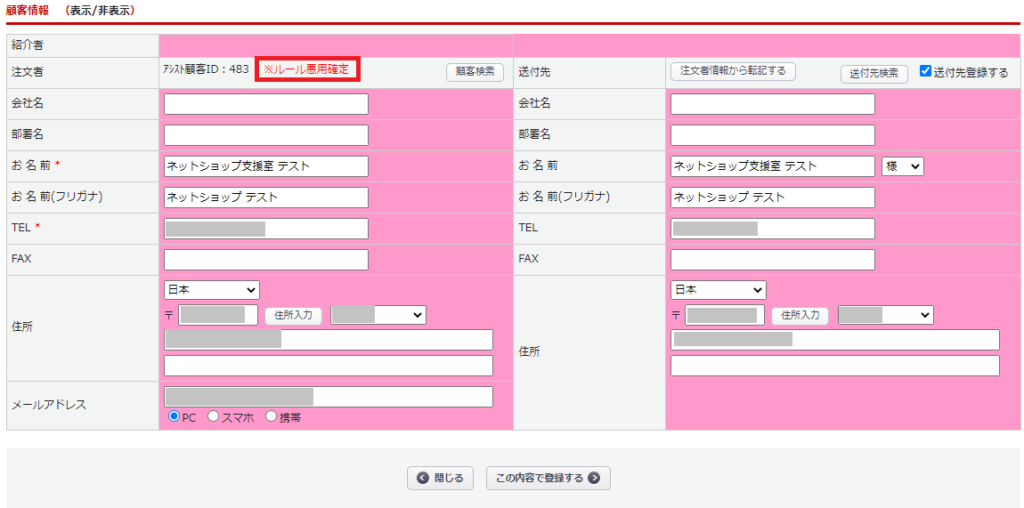 ・審査した結果、不正注文が確定した場合(ルール悪用確定)