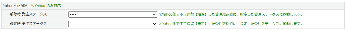 環境設定>管理システム設定>「業務フロー設定」タブ 1.注文受付時-決済処理 Yahoo不正保留より