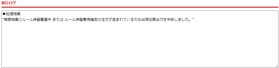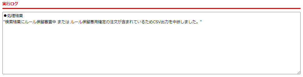 出力対象に保留審査中または悪用確定の注文が含まれる場合、出力処理が中断されます。