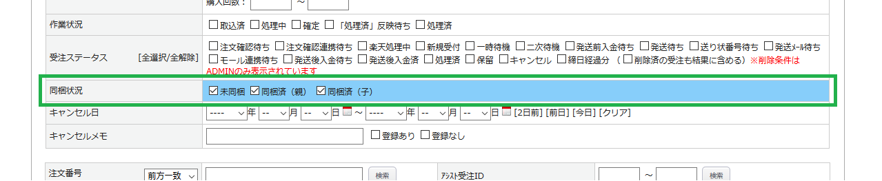 同梱候補一覧へは、同梱条件に合致した受注のみ表示されます。