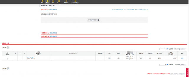 作成後は顧客一覧の検索結果一覧より、