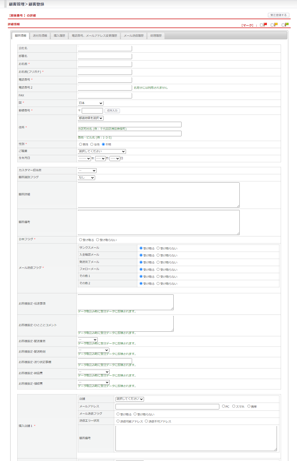 また、購入実績のある顧客は、購入履歴やメール送信履歴をご確認いただけます。