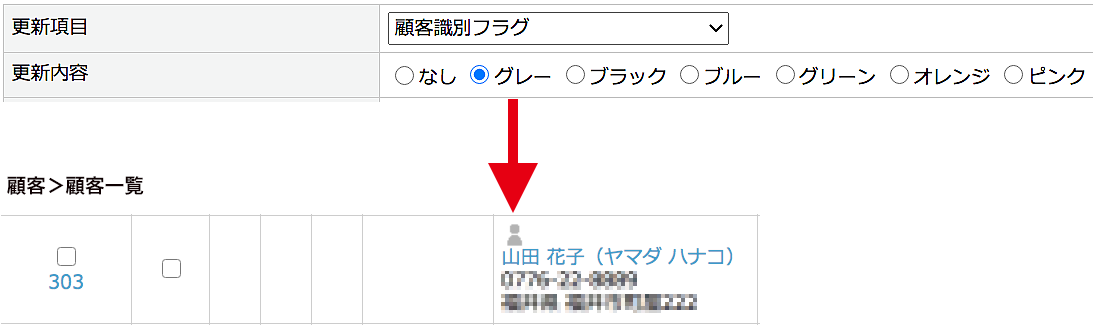 「受け取る」へ更新するか「受け取らない」へ更新するか、いずれかを選択してください。 ※「顧客識別フラグ」を選択した場合、更新内容項目に色を選択するラジオボタンが表示されます。