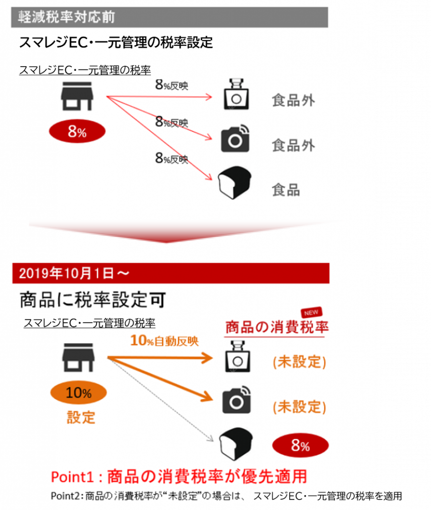 軽減税率導入に向けて、スマレジEC・一元管理ではシステム改修を行い、