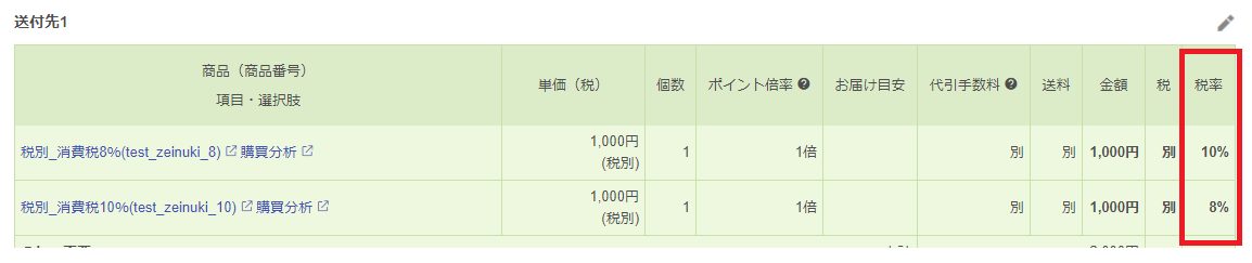 出品商品の登録がある場合で受注データが登録済みの出品商品に紐づいた場合、出品商品の税率を参照して受注データにセットします。登録がない場合、税率設定を参照して受注データにセットします。