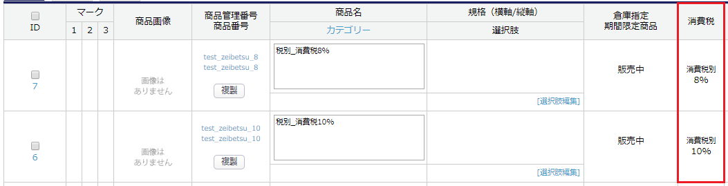 ※ファイルは「通常商品」、項目は「消費税率」です。