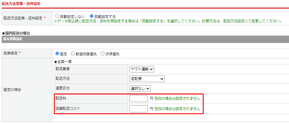 送料の変換設定や自動設定を使用している場合は、見直しが必要です。