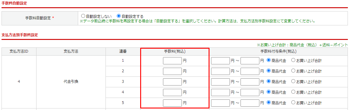 手数料は税込価格で入力してください。