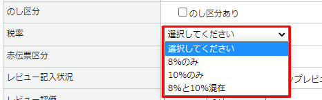 1.税率毎の検索が可能となります。(8%のみ、10%のみ、8%と10%混在)