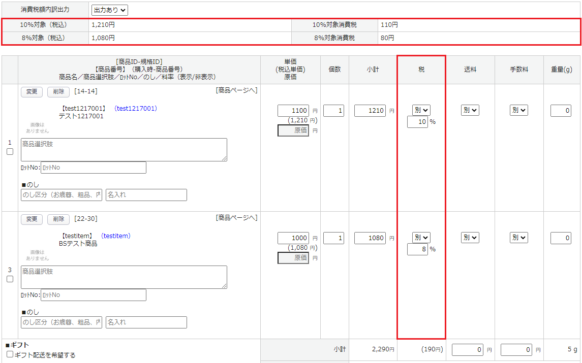 注文CSVデータ、出荷システム連携用CSVなどに軽減税率用の項目が追加されます。
