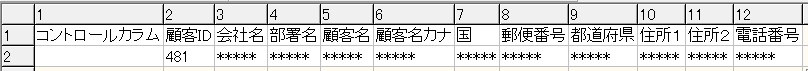 「CSVファイルマスキング項目」にチェックをつけたセキュリティ属性の項目がマスキングされて出力される。