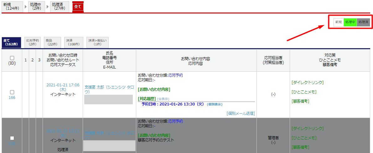 「システム設定>マスターデータ管理」の「顧客管理:応対ステータス」登録後、