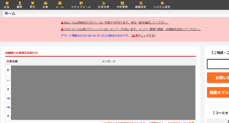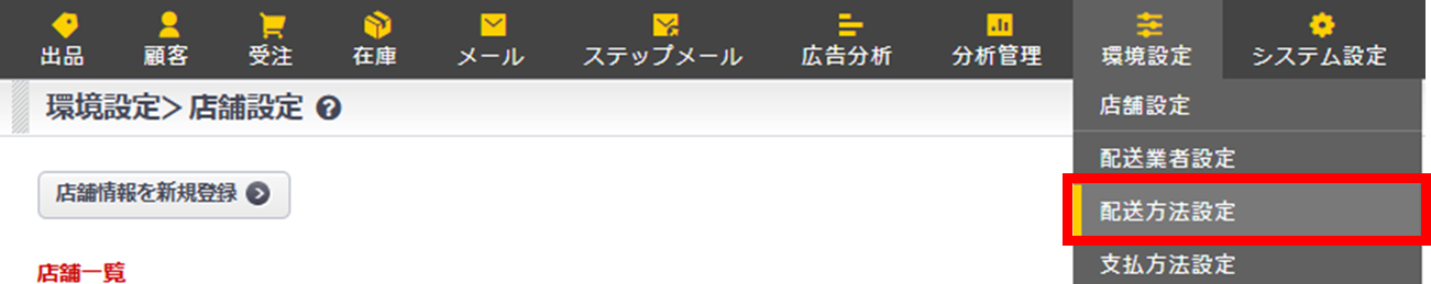 ※対象モールが存在しない場合は、画面左上の[店舗情報を新規登録]から登録してください。
