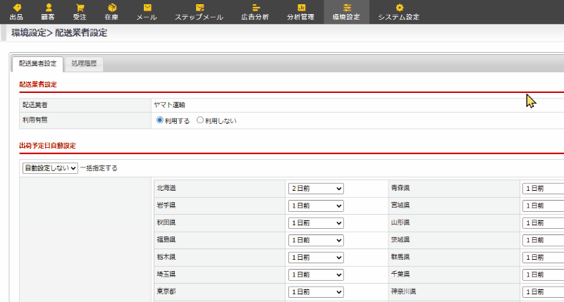 出荷予定日・お届け予定日の計算に必要な設定です。