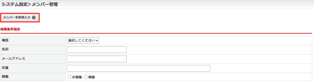 画面左上の[メンバーを新規入力]をクリックすると、新規登録画面が開きます。