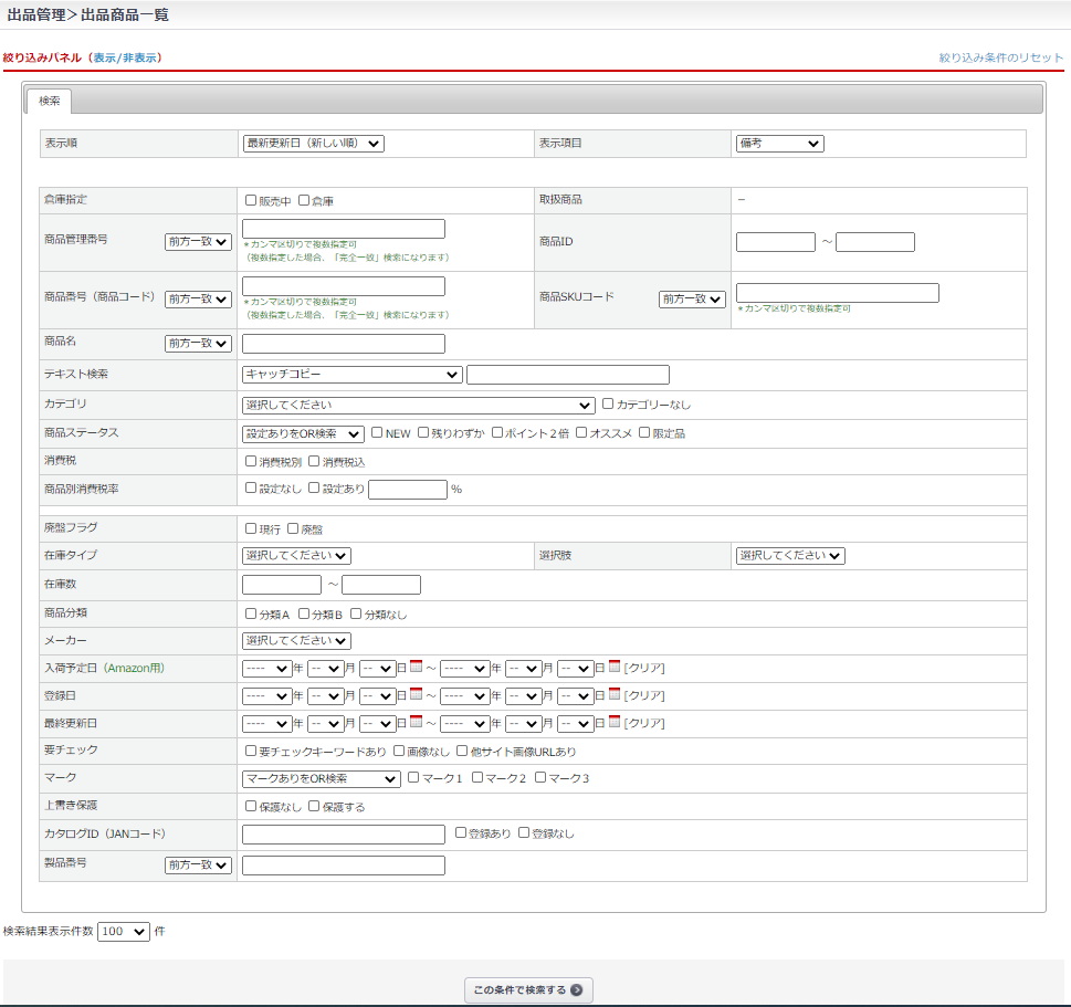 | 商品管理番号 [前方一致/部分一致/完全一致] |